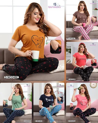 • Capri Pyjama Night Suits Wholesaler Exporter Manufacturer Catalog Dealer Ahmedabad Surat Gujarat India
